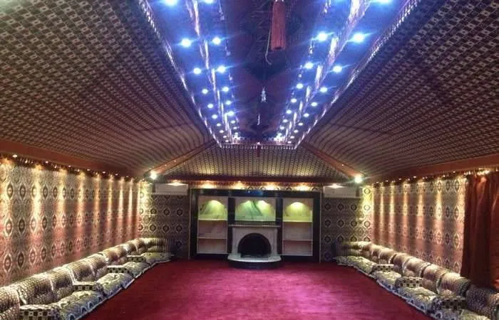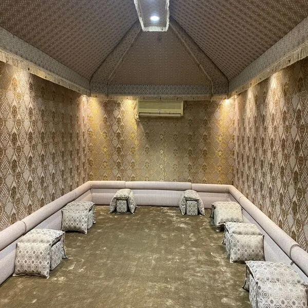 بيوت الشعر الفاخرة: مصممة للقصور والاستراحات، تتميز بأرضيات فاخرة، عوازل، أنظمة تكييف وإضاءة داخلية متطورة.
