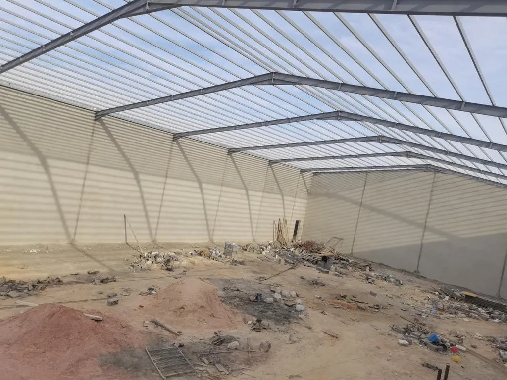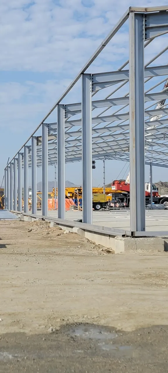 الهيكل المعدني: في هذه المرحلة، يتم تركيب الهيكل المعدني الذي سيدعم الهنجر. هذه المرحلة تحتاج إلى معدات وآلات ثقيلة لتثبيت القطع الكبيرة من المعدن.