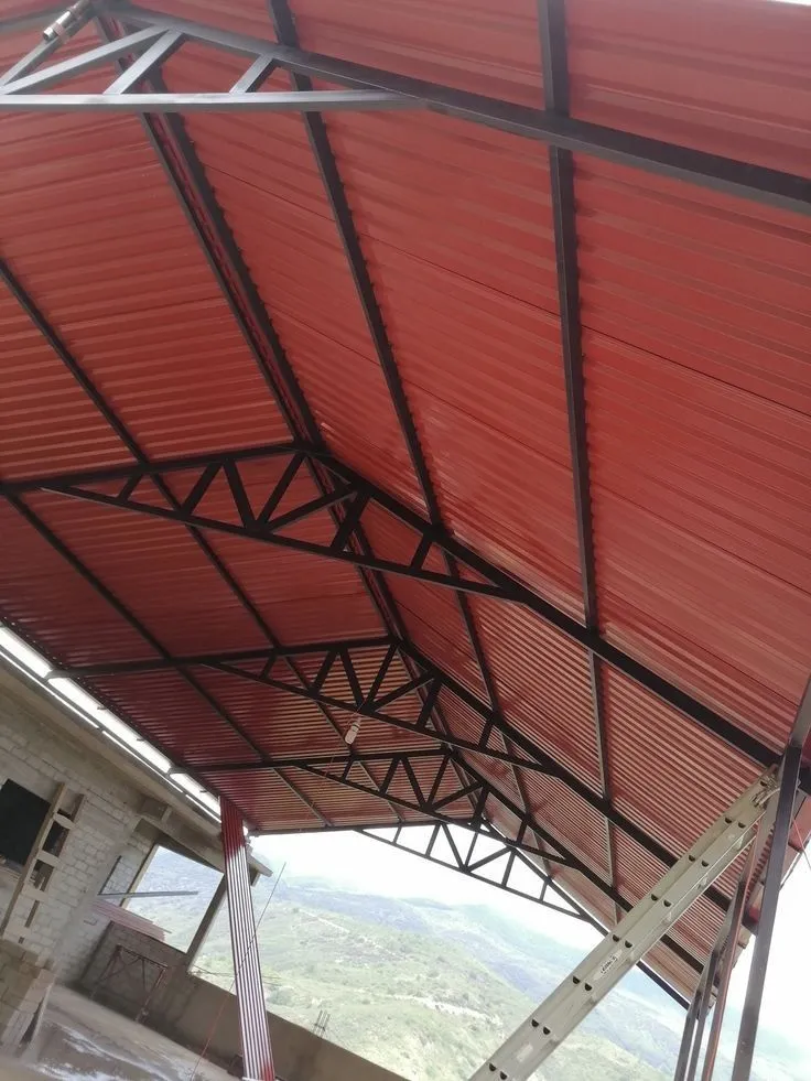 التثبيت النهائي: بعد تثبيت الهيكل، يتم تركيب الألواح المعدنية أو الصاج بشكل محكم، ويجب أن يكون هناك فحص للتأكد من الاستقرار وعدم وجود أي تآكل أو مشكلات في القطع المعدنية.
